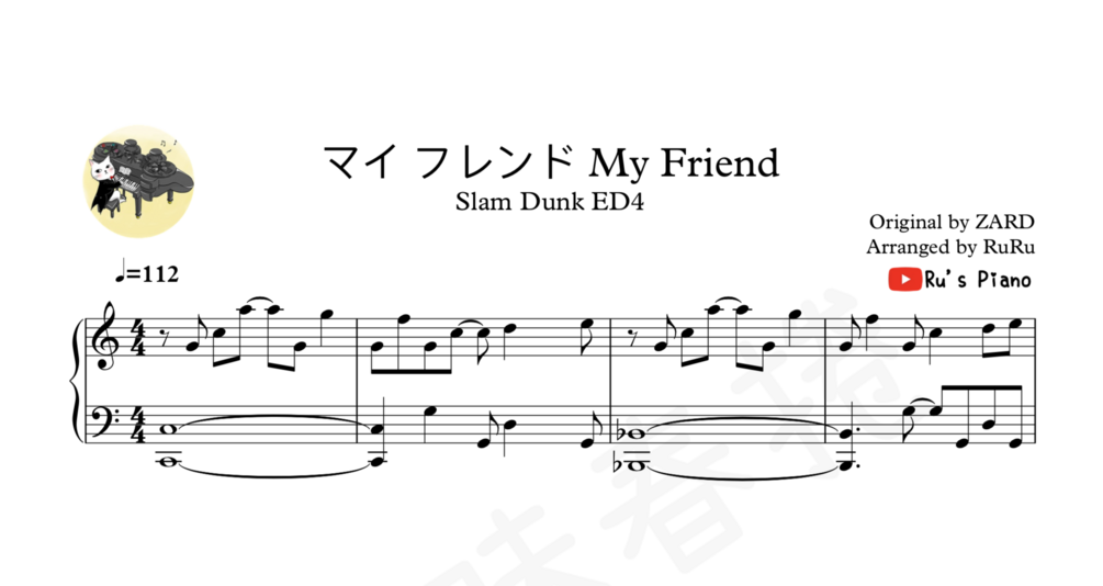 This is the Sheet Music PDF of Ru's piano cover "灌籃高手Slam Dunk ED4 - マイ フレンド My Friend"