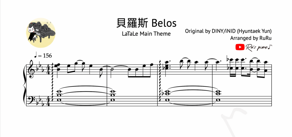There are the Sheet Music PDF and MP3 file of Ru's piano cover “彩虹島LaTaLe OST - 貝羅斯 Belos”