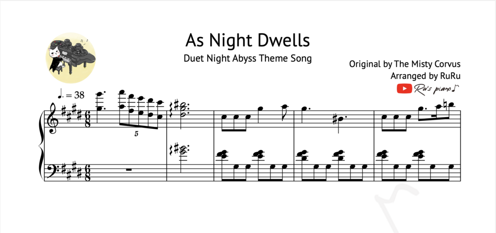 There are the Sheet Music PDF and MP3 file of Ru's piano cover "Duet Night Abyss Theme Song - As Night Dwells"